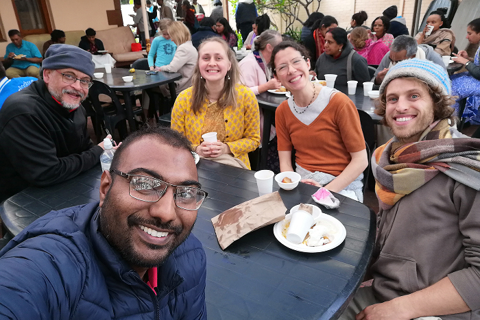 Experience Sunday Love Feast with mantra chanting, Bhagavad Gita wisdom, joyful kirtan, spiritual community, and a complimentary vegetarian feast